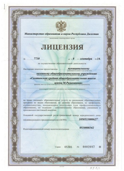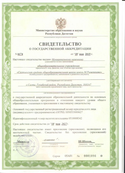 | Полное наименование образовательной организации* | Муниципальное казенное общеобразовательное учреждение "салтынская средняя общеобразовательная школа имени м. Рамазанова" |