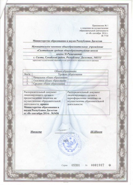 | Адрес местонахождения образовательной организации* | 368331, Дагестан Респ, ГУНИБСКИЙ, Салта с |